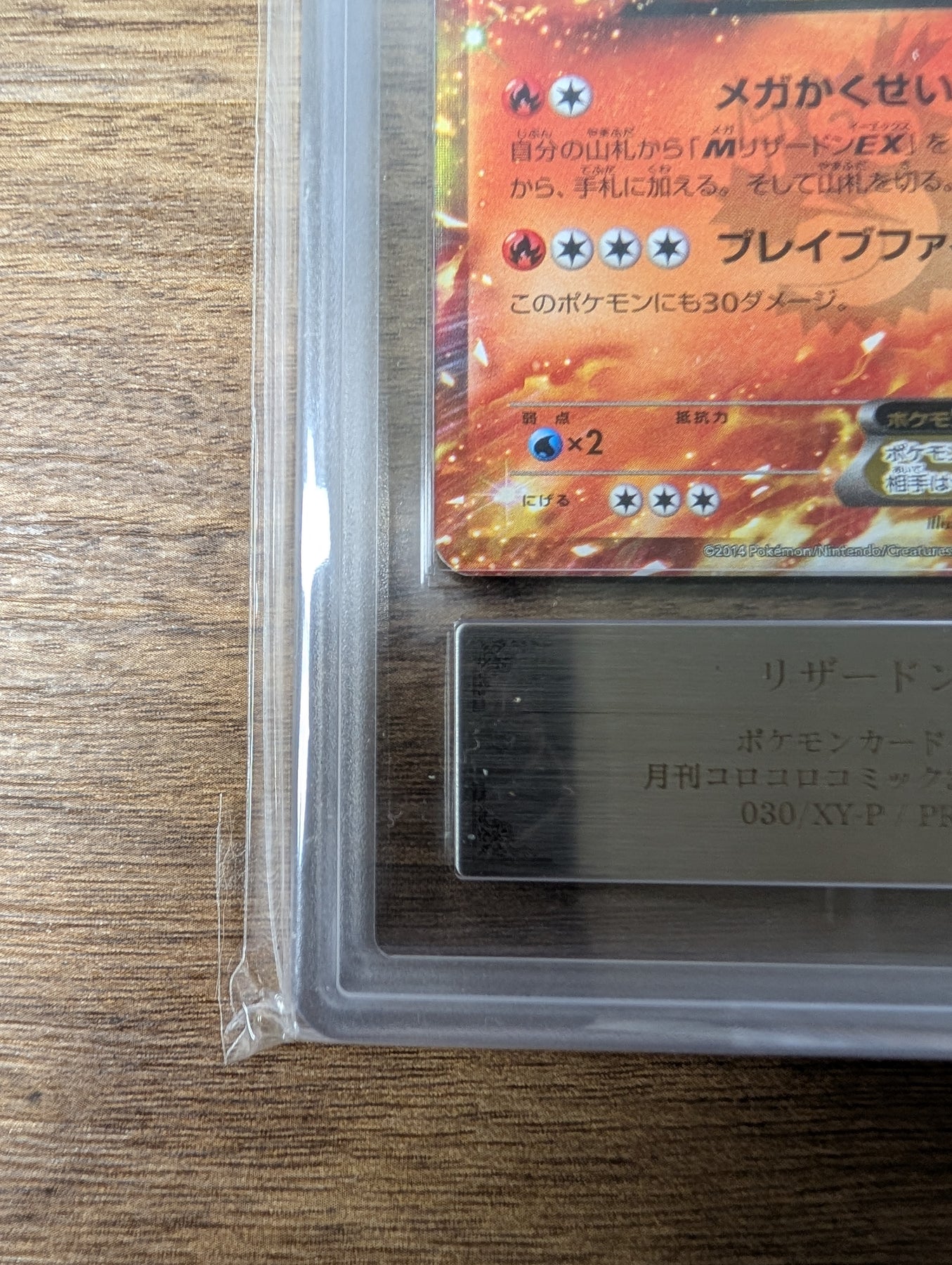 希少なリザードン EX 030/XY-P プロモーションカード。もともと日本でコロコロコミック誌限定で発売されました。 ARS 9グレードのこのまばゆいばかりのホロ レアは、リザードンの伝説的な存在感と時代を超えた魅力を完璧に捉えた鮮やかで燃えるようなアートワークが特徴です。